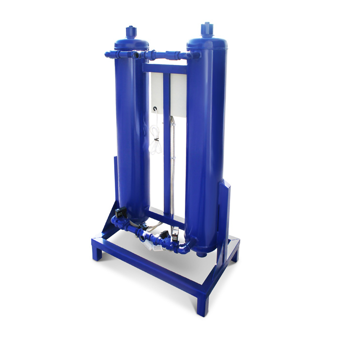 Основан на процессе адсорбции, при котором молекулы воды захватываются специальным адсорбентом (например, силикагелем или активированным алюминием). Осушаемый воздух проходит через колонну с адсорбентом, где происходит удаление влаги. После насыщения адсорбента влагой запускается процесс регенерации — подача нагретого воздуха, который удаляет влагу из адсорбента, восстанавливая его свойства.